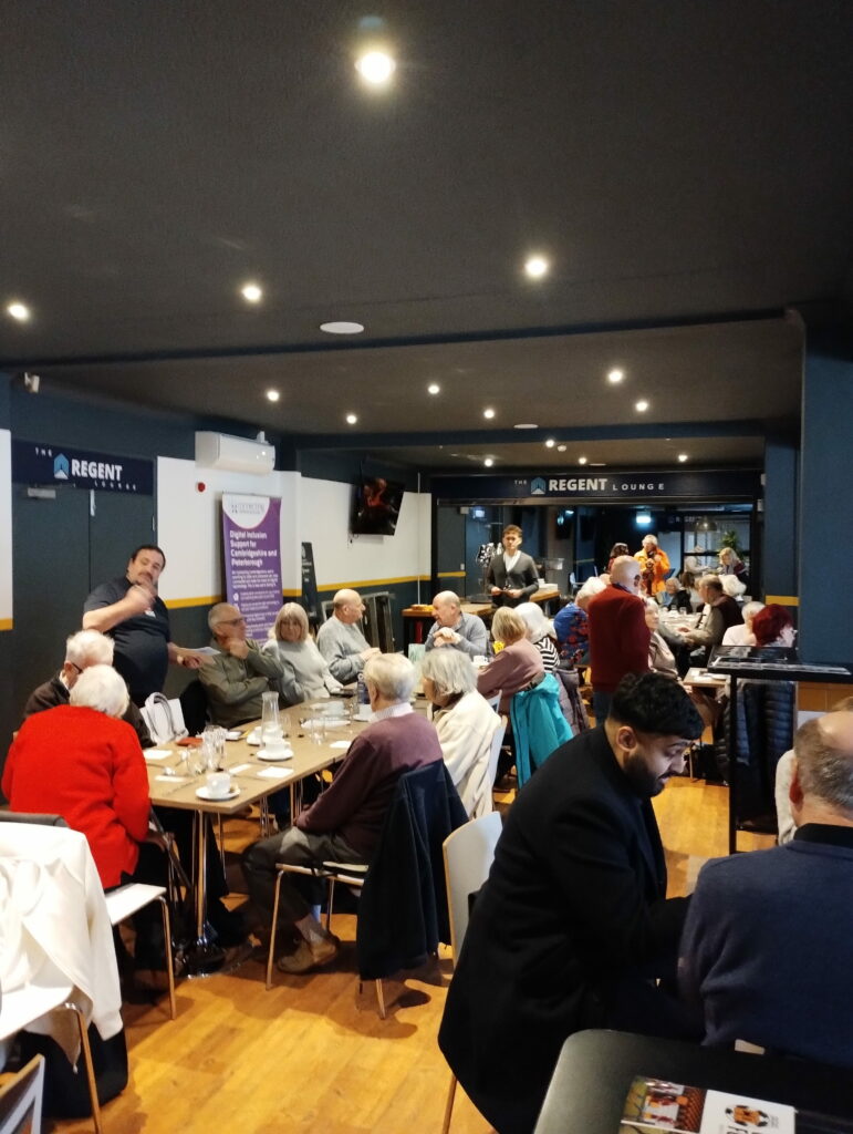 The Signature Suite at Cambridge United Football Club was buzzing with conversation, connection and community spirit last week (Thursday 5 February 2026) as seniors gathered for the Cambridge United Foundation’s latest monthly Seniors Lunch, joined by representatives from Connecting Cambridgeshire and the Cambridgeshire & Peterborough Against Scams Partnership (CAPASP).